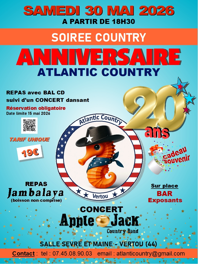 | 30/05/2026 | Atlantic Country – 20 Ans | Vertou | 44120 | ||