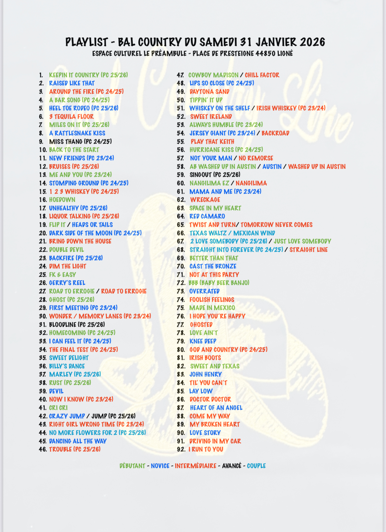 | 31/01/2026 | Cool Country Line | Ligné | 44850 |