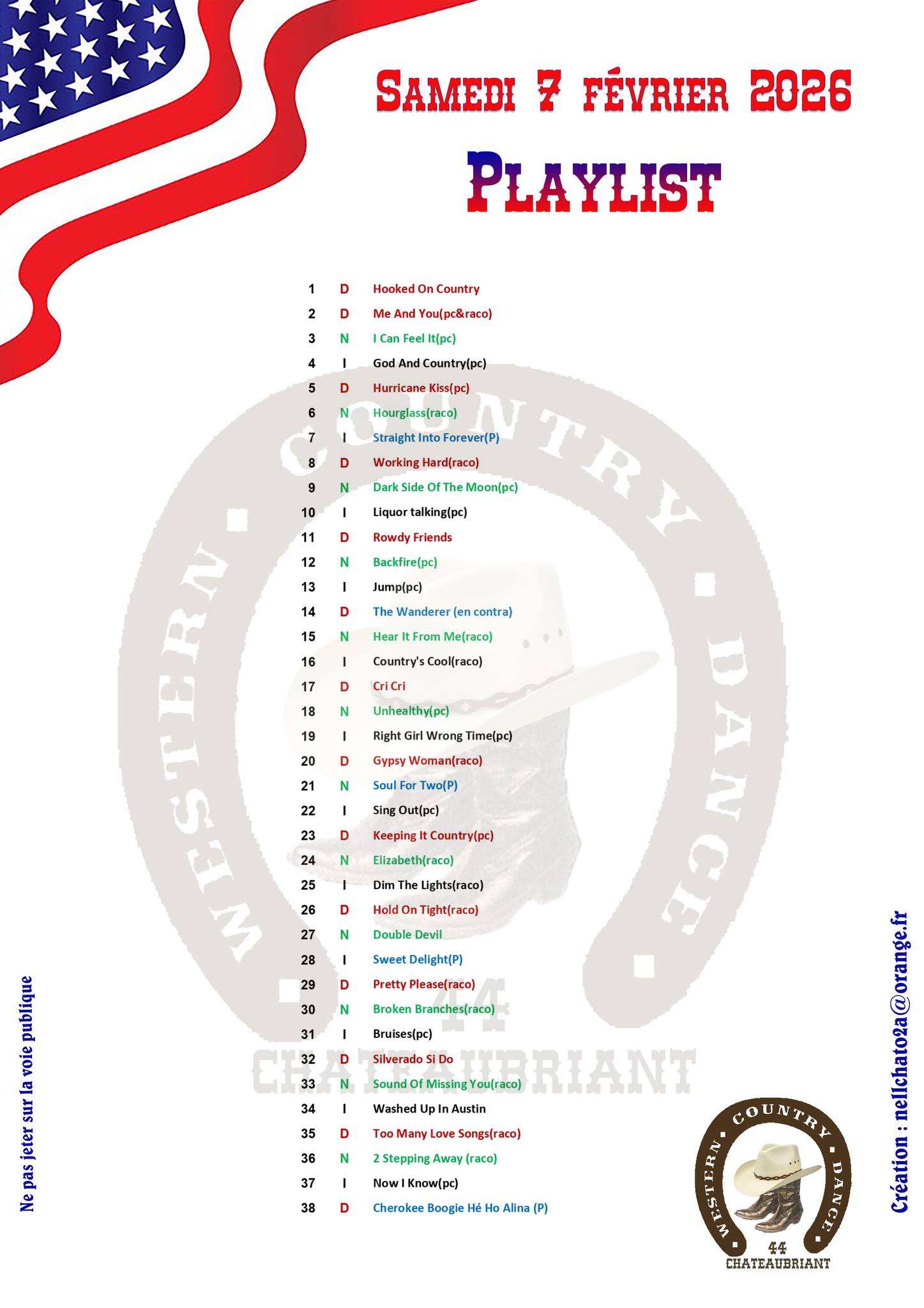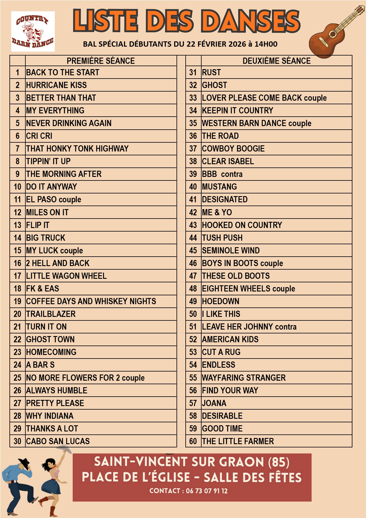 | 22/02/2026 | Country Barn Dance | Saint-Vincent-sur-Graon | 85540 | ||
